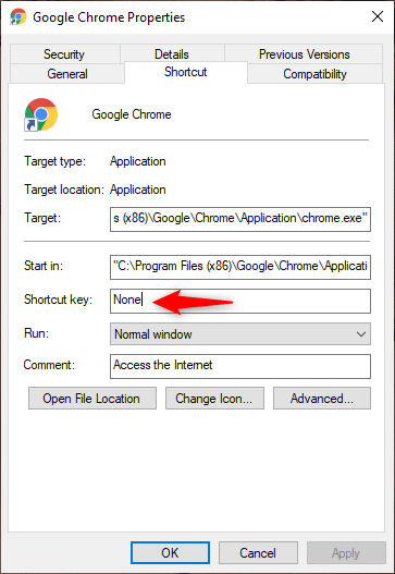 Step 3 : Click on the Shortcut key box and press the shortcut key combination you want to use to call the application, in this example we use the key combination: Ctrl + Alt + C to launch Chrome.