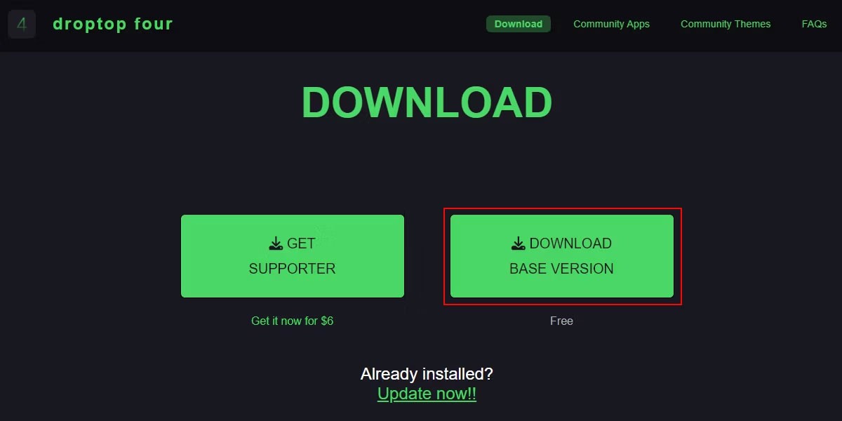 3. Open the download folder and double-click the .rmskin file. The Rainmeter Skin Installer will open. Click Install to have Rainmeter apply the Droptop 4 skin and enable the menu bar.