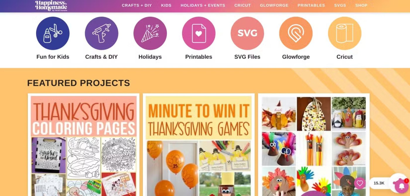 Happiness Is Homemade is a great resource for arts and crafts ideas for people of all ages. It includes seasonal ideas like Thanksgiving, Christmas, or Halloween, but also has a variety of projects you can do yourself all year round. Just click on Crafts + DIY to find the perfect project for you.