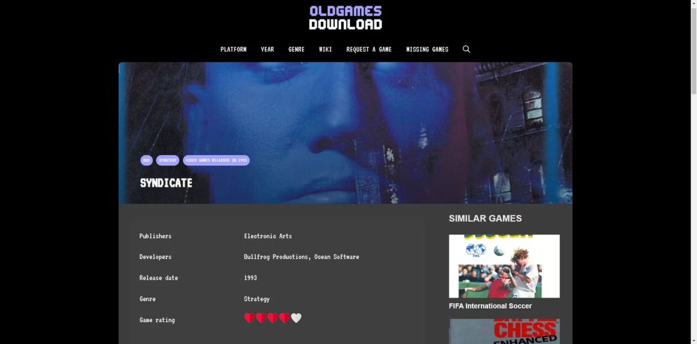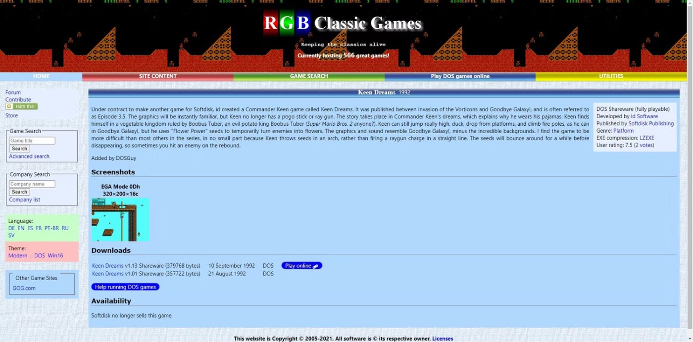 You can search for games by genre and operating system, as well as company name, legal status, release year, and video mode. Furthermore, as a testament to RGB Classic Games’ mission, you can play a significant number of titles on the emulator hosted on the site, including Keen Dreams, Hexen, and one of the all-time favorites, Transport Tycoon.