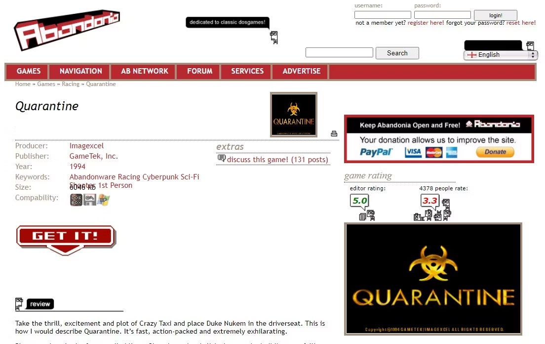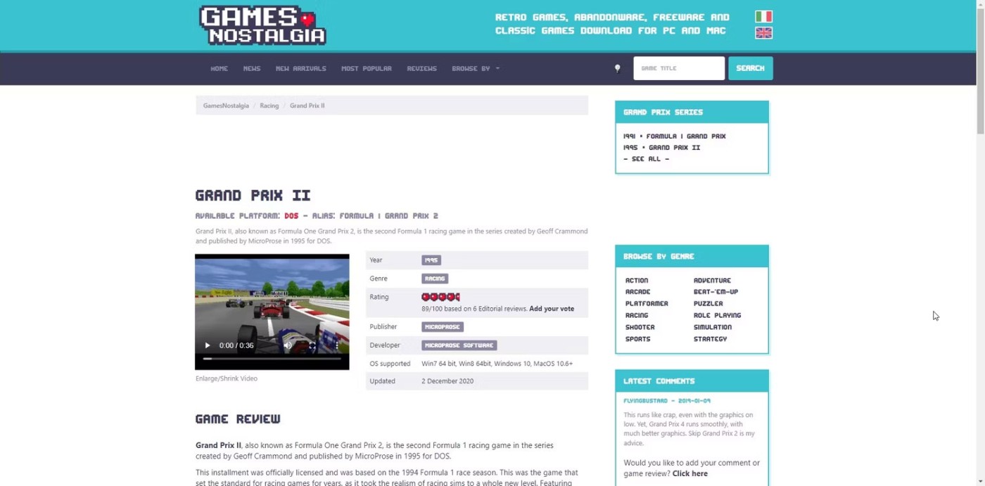 Abandonware Dos is also a very active site. Each game comes with a site rating, specs, release date, screenshots, as well as recently played(ish) videos and snippets of information related to the game.