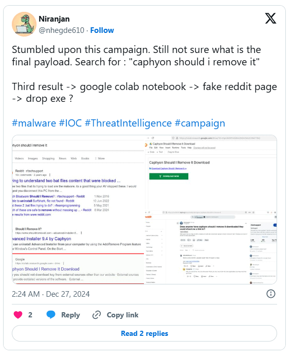 Victims are served links to fake Reddit pages using a number of techniques. For example, Google Notebooks hosts links to malicious page rankings in Google Search, which direct unsuspecting users to a WeTransfer page hosting the Lumma Stealer payload.