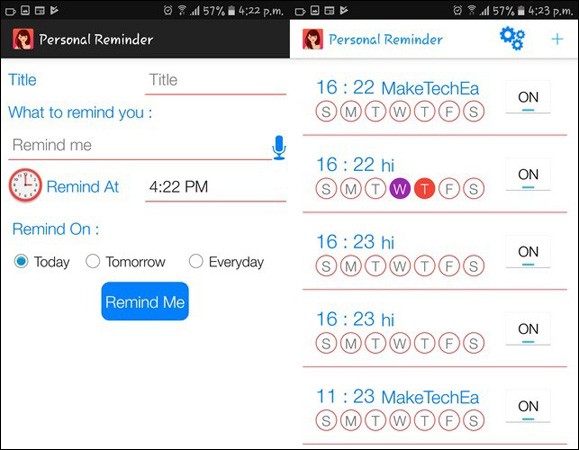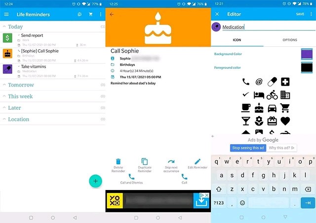The app also has a custom widget, calendar, and missed call reminders. Swipe down from the top of the screen to see all the reminders you've created. If you want to create a new reminder, just swipe down and tap the " + " sign, even from the lock screen.