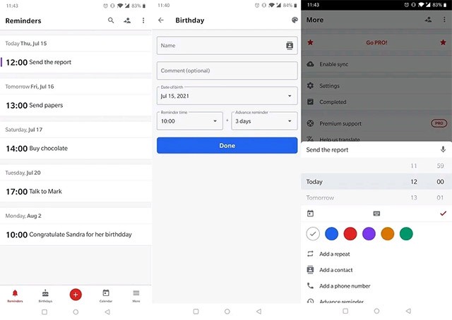 Life Reminders is one of the great options if you are a forgetful person. This reminder app fully supports basic features in many different languages such as English, Russian, French, Spanish, Dutch...