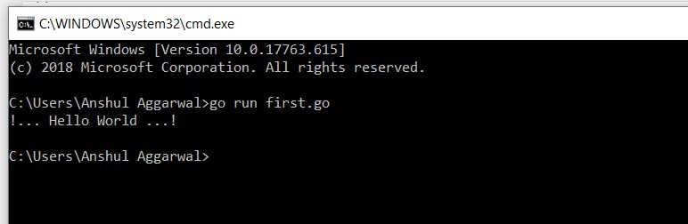 To run a Go program, you need a Go compiler. Once you have a Go compiler, first create a program and save your program with the .go extension , for example, first.go . Now we run this first.go file in the go compiler using the following command, i.e.: