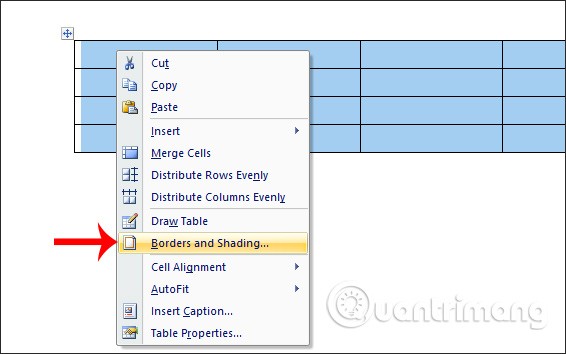 After creating the table, we highlight the entire table, right-click on the table and select Borders and Shading in the displayed list.