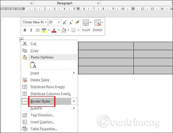 We also draw a table on Word by clicking Insert. Then highlight the entire table and right-click. In this list there will be the Border Styles option .