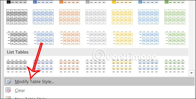 Also in the Design tab, click the arrow icon and select Modify Table Style ...