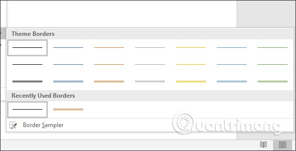 Displays the interface for users to choose the border style for the table. Here users have many ways to choose the border for the table.
