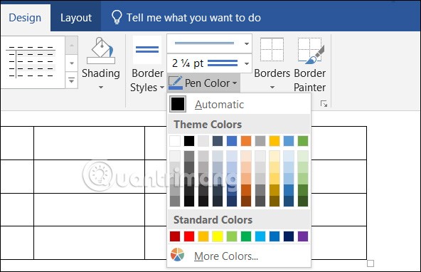 In case you want to change to another color , click on Pen Color and choose a color for the table border.