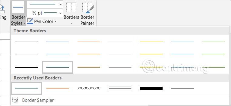 In addition, when you click on Border Styles, you will see a number of table border styles for you to choose from.
