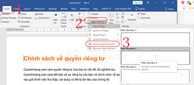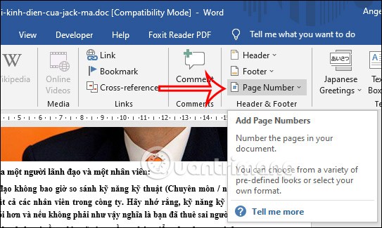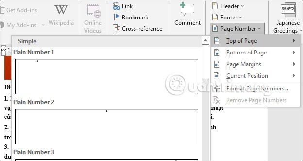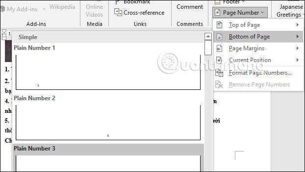 Next, click on Page Number and select the position to place the page number . Now all pages will be numbered in order.