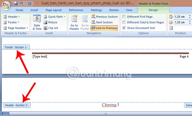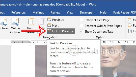 B4: Click Link to Previous to disconnect the next section from the previous section. If you don't find this option, just double-click on the header or footer of the document and it will appear.
