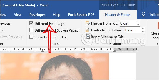 Now you will continue to check the Different First Page box . Then the cover page will no longer be numbered , or the first page will no longer be numbered in order.