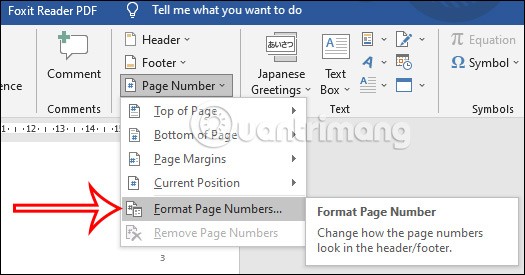 To change the existing page number to the page number you want, under Page Number select Format Page Number…