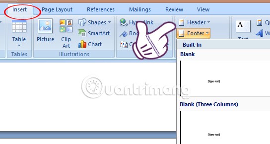 Step 6: In the Insert tab, select Footer or Header to add page numbers and reformat the page number style for the text. Here I choose Alphabet Footer.