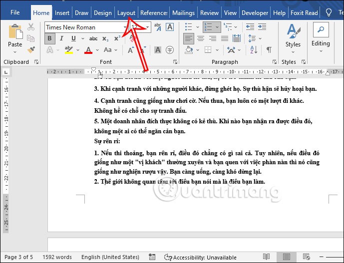 First, go to the page you want to number . Then click on the Layout tab on the Ribbon bar .