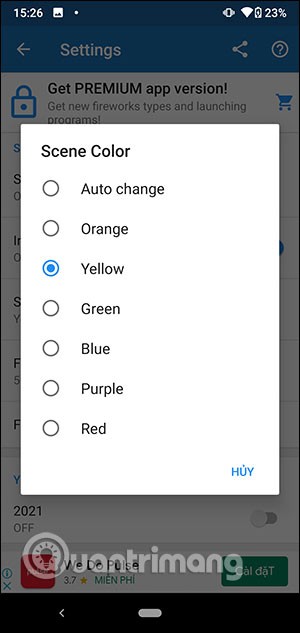 Scroll down below and we will set up the color and sound for the fireworks at Sound and colors. You can choose the color for the scene, the color of the fireworks displayed on the screen, the number of fireworks displayed on the screen, and whether to turn on the sound or not.