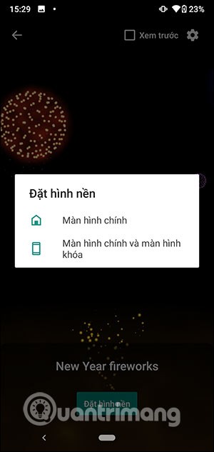 Many people like live fireworks wallpapers to celebrate the New Year with the bustling sound of fireworks and beautiful colorful fireworks displays. The New Year Fireworks 2021 application for Android devices not only recreates the fireworks scene but also the sound of fireworks and many other settings. Users can change the color of the fireworks, change the wallpaper color as they want to get a satisfactory animated fireworks screen. The following article will guide readers on how to install live fireworks wallpapers on Android.