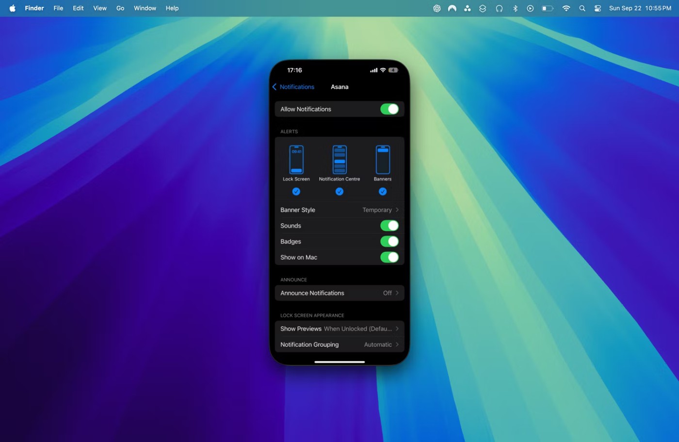 You can change this option later from your Mac by going to System Settings > Notifications > Allow notifications from iPhone and turning it off. Alternatively, you can go to the iPhone Settings app , tap Notifications , select the individual app, and turn off Show on Mac .