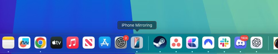 To set up iPhone Mirroring, simply click the iPhone icon in your Mac's Dock. If you don't see it there, use Spotlight search ( Command + Space ) to find and open the iPhone Mirroring app. But there are a few things you should make sure of before you can use iPhone Mirroring.