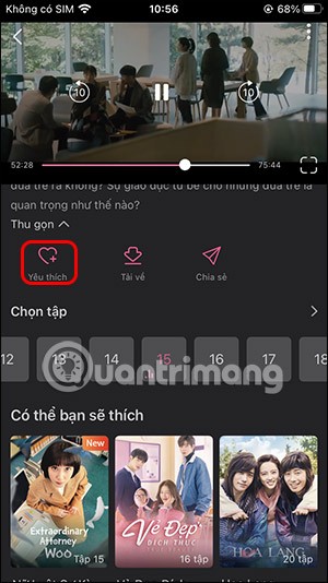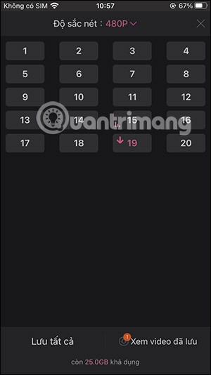 When clicking on the Download icon , users will be able to choose which episodes they want to save or save all. In addition, they can choose the video quality they want to save .