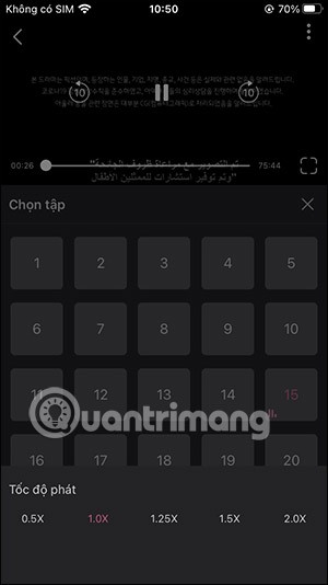 Also on the movie screen, users have icons to adjust the movie being shown, swipe the screen up and down to change the light. Or click on the 3 dots icon to change the playback speed.