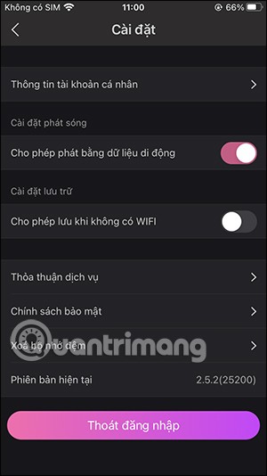 In the Me section , click on Settings to see some settings for the application, adjust the movie saving mode when there is WiFi or not.
