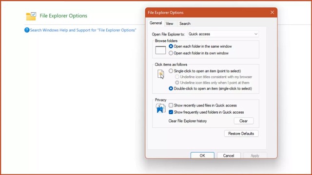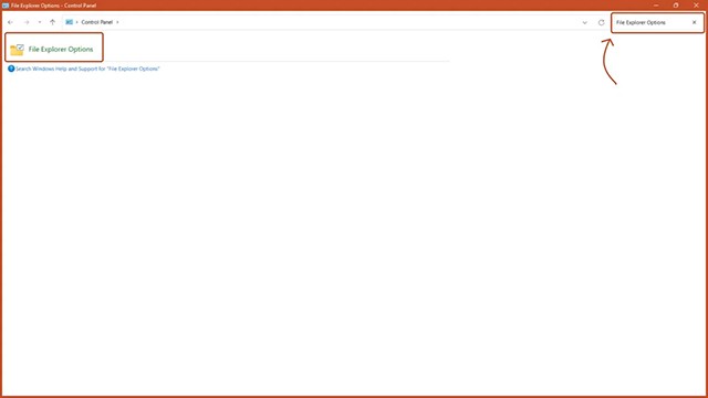 Step 2: Type File Explorer Options into the search bar on the top right of Control Panel.
