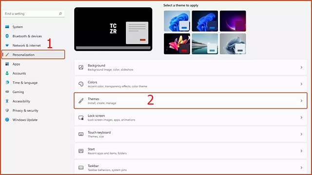 Step 2: Select Personalization in the left toolbar of the new window that appears, then select Themes in the right section.