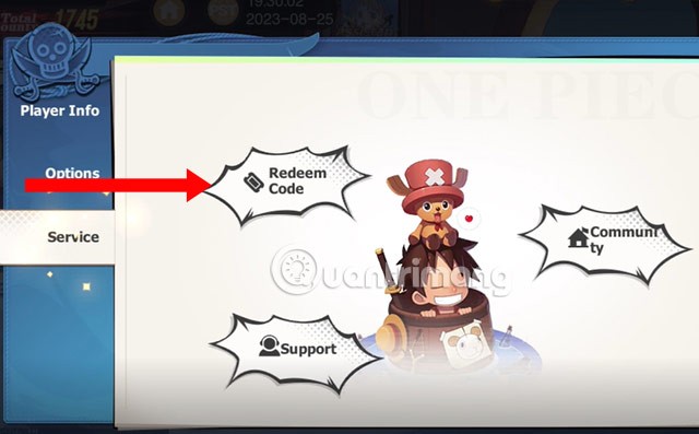 Step 2: Select Service > select Redeem code to open the code redemption table