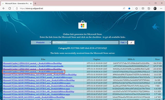 - Find Microsoft.Copilot_1.25023.106.0_neutral_~_8wekyb3d8bbwe.appxbundle and click to download.
