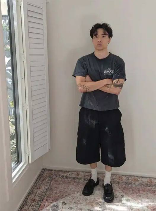 A graphic tee adds personality and street style, while chino shorts provide a subtle contrast. This combination of casual and polished elements makes the outfit perfect for relaxed outings or casual events. The bold print or statement design of the tee allows for self-expression, whether minimal or eye-catching. Finish the look with sneakers or loafers to keep things cohesive.
