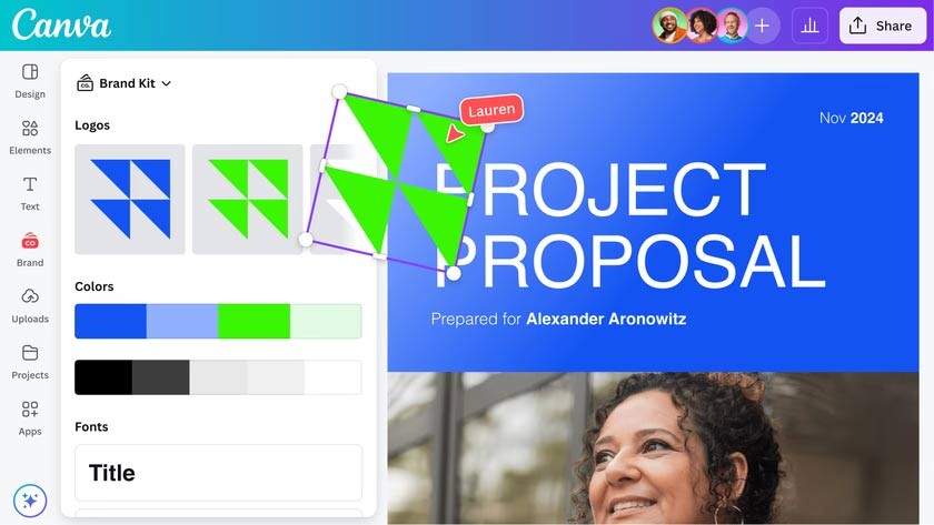 Pre-designed templates and brand design guidelines in the editor make it easy to accurately represent your brand identity, so you can focus on bringing your ideas to life. Whether you’re starting from scratch or uploading existing assets, Canva Print and Brand Kit work together to help you create high-quality, print-ready materials that represent your brand at its best.