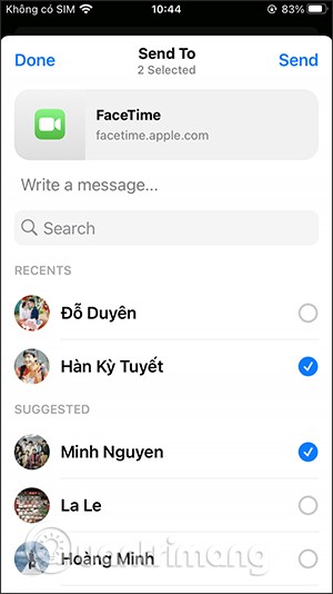 After selecting the person you want to contact, click Invite by Message . Then we will send a FaceTime video call invitation message by message to the other person.
