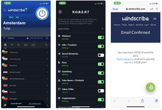 Windscribe is incredibly easy to set up. You don’t even need an email to get started. However, you’re limited to 2GB of data per month unless you opt in to submitting your email address. Once you do, your data limit increases to 10GB per month.